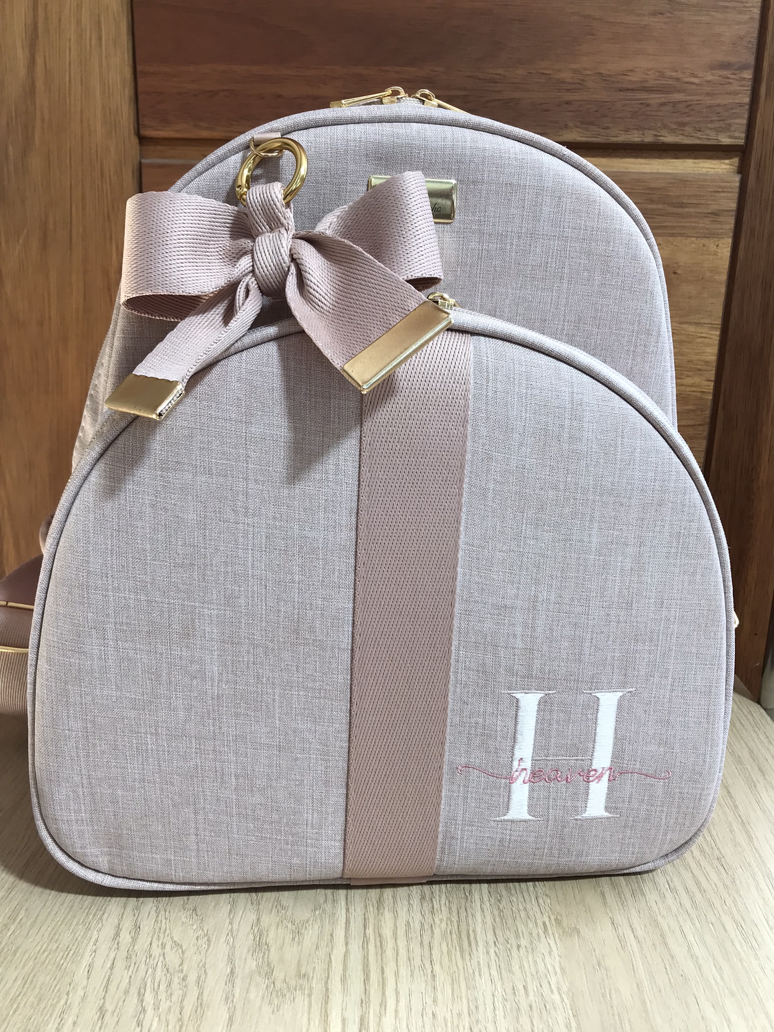 Mochila Baby G Linho rose com faixa nude